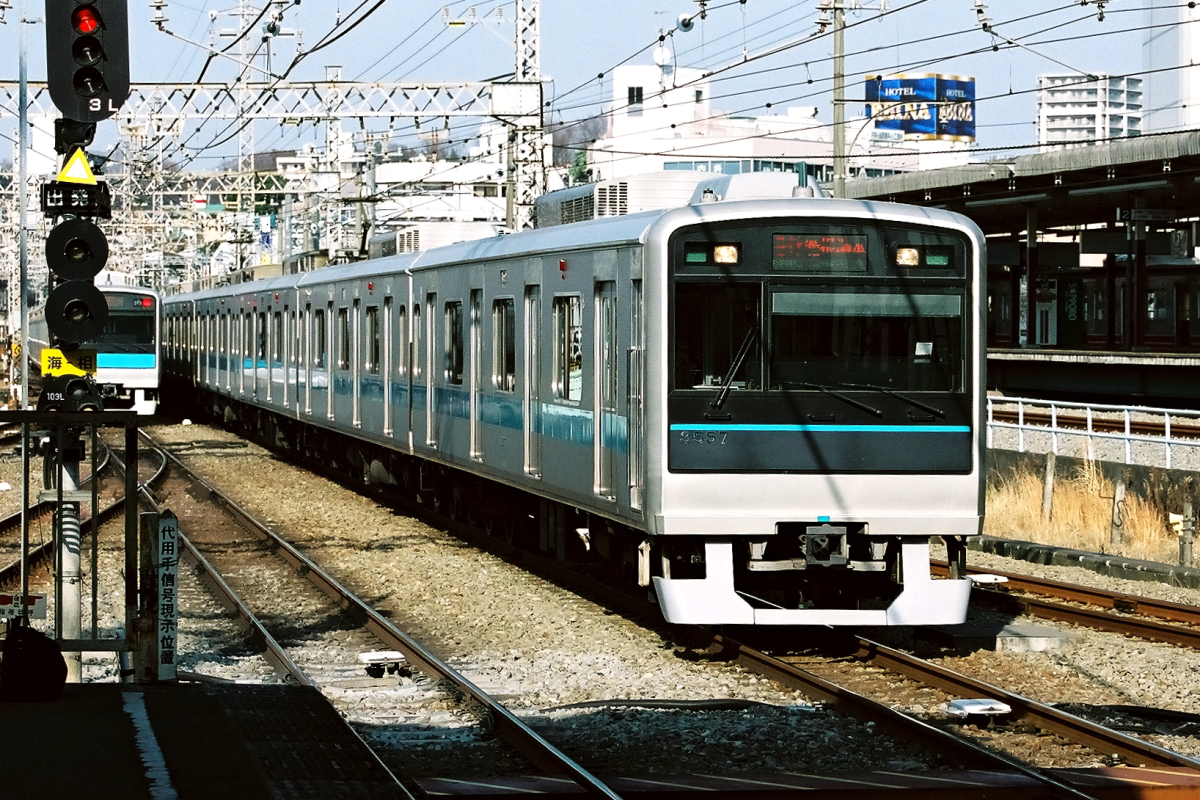 現在は他の3000形と同じく細い帯になっていますが、これは細帯の編成が登場した後に変更されたもので、短期間ながら両方が見られた時期があります。