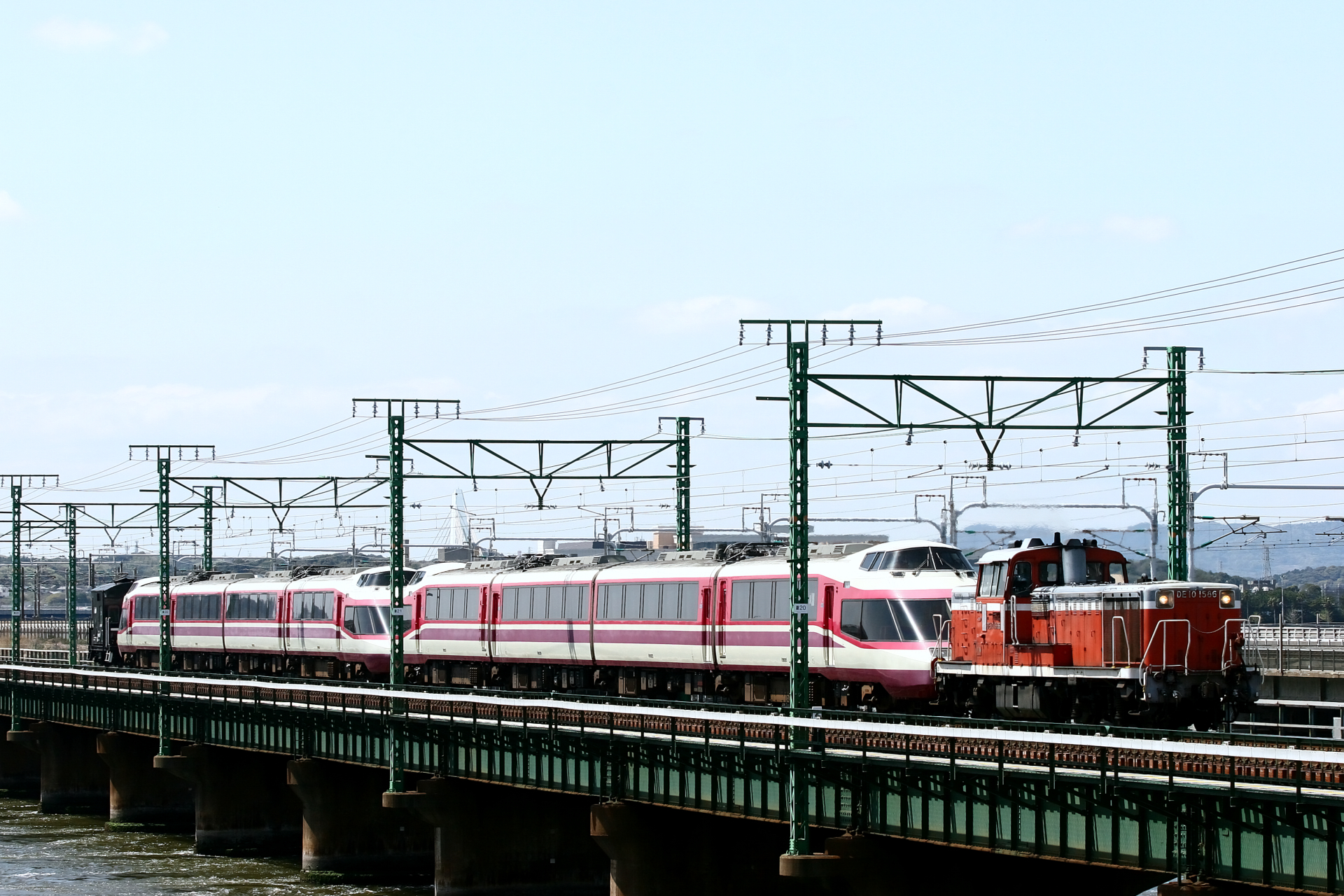 今度は長野電鉄への大移動となるのですが、編成が短くなったことで2本まとめて甲種輸送されることになり、先頭車同士が向かい合う珍しい光景が見られることとなったのです。