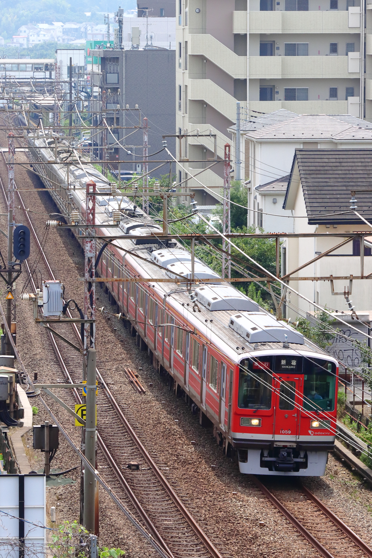 2020年8月限定で、小田急の全線を走行している赤い1000形。
