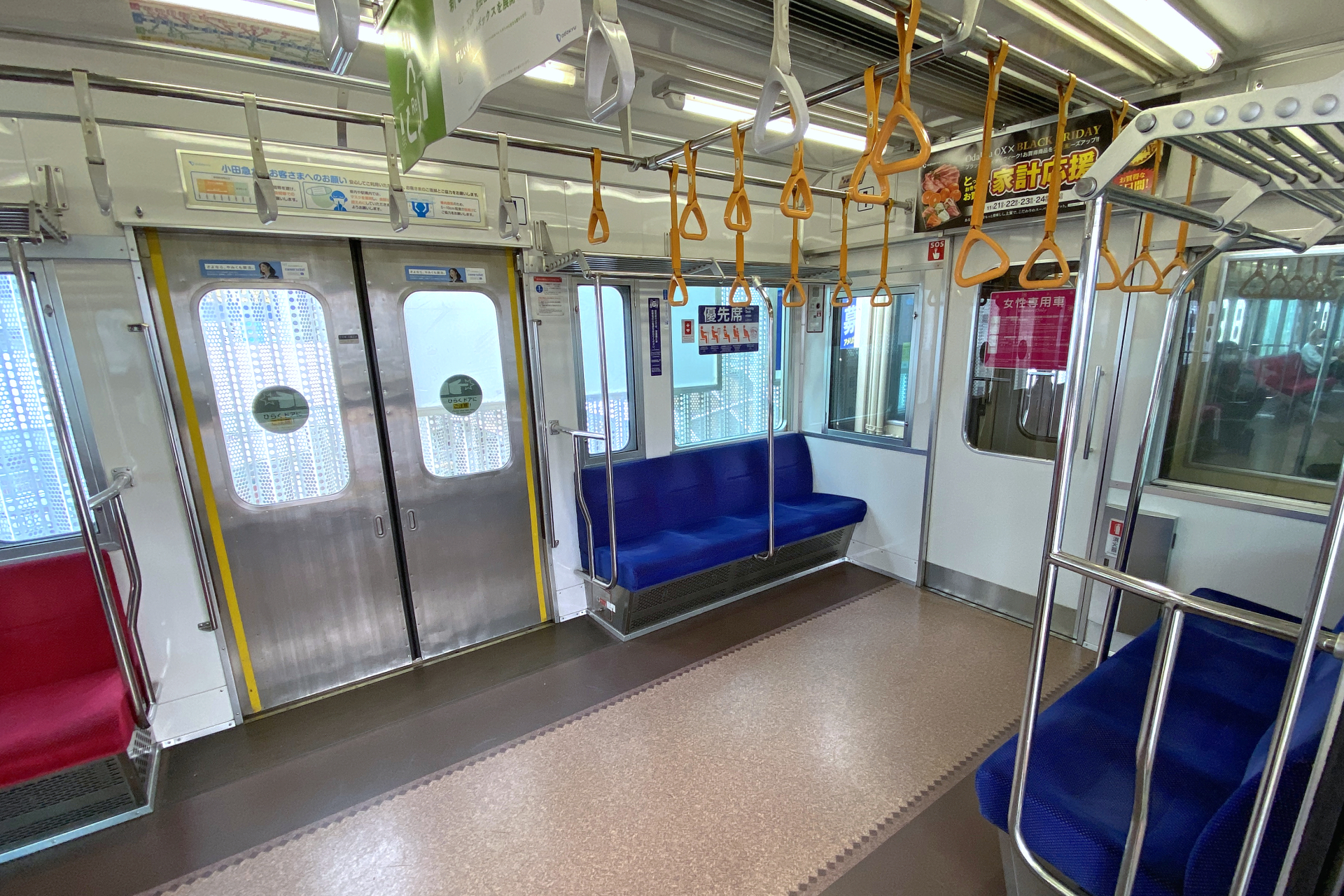 その後も小田急では化粧板を貼ったドアを採用し続けており、冷たい印象を受けにくい車内となっています。