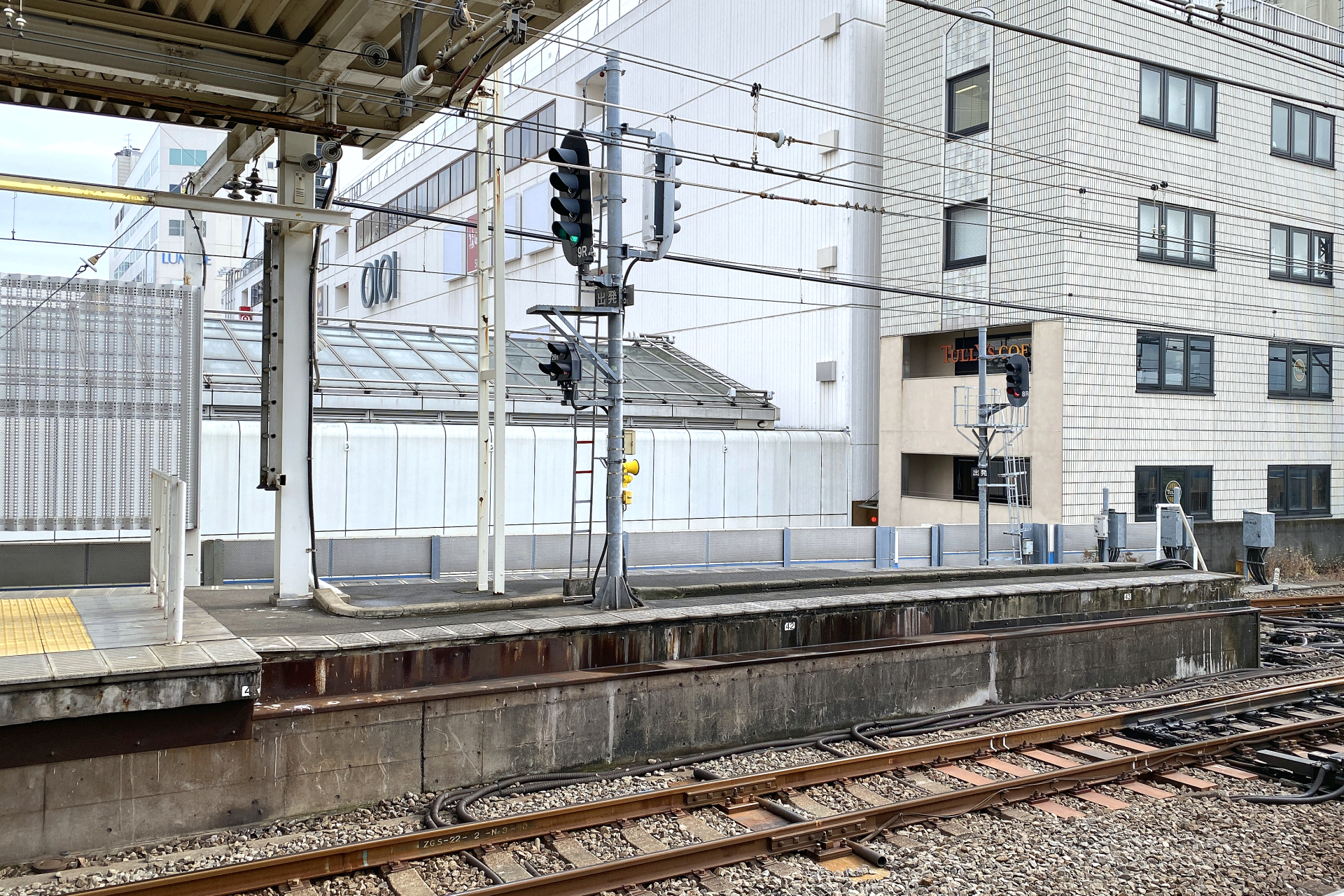 入れないスペースが広がった理由は分かったものの、渡り線が追加される前からこのようなスペースがあった理由はよく分かりません。信号機の柱は昔から上り線のホーム上に立っており、上部が狭くなっているのも変わらずで、何を理由としてそうなっていたのかが気になるところです。