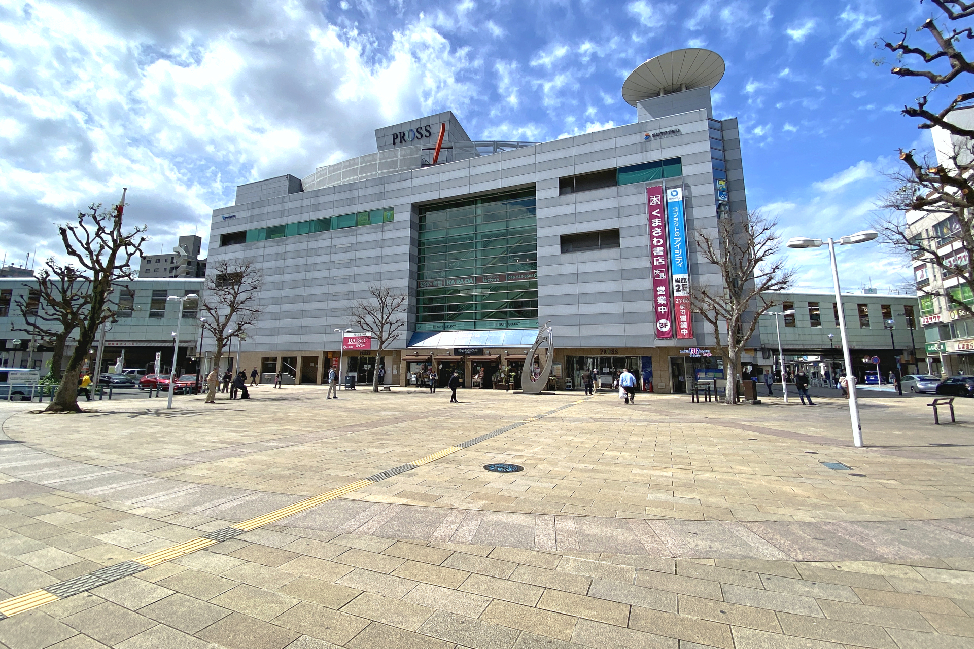 東側の風景はこのようになっており、大和駅ビルプロスの前には、やまと広場と呼ばれる空間が設けられています。