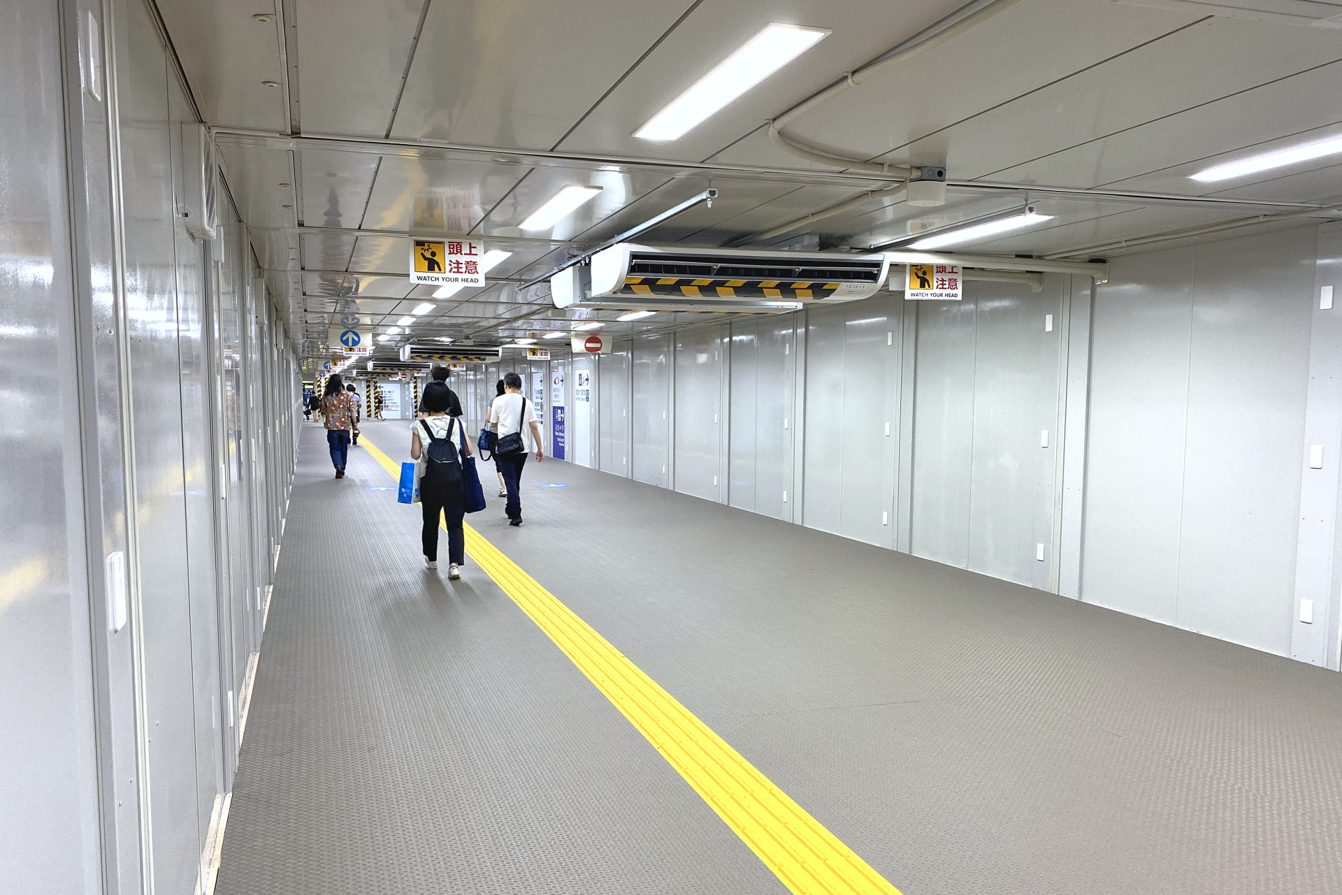 以前よりも遠回りが必要なケースもありますが、仮設とは思えないほど快適な通路が用意されています。