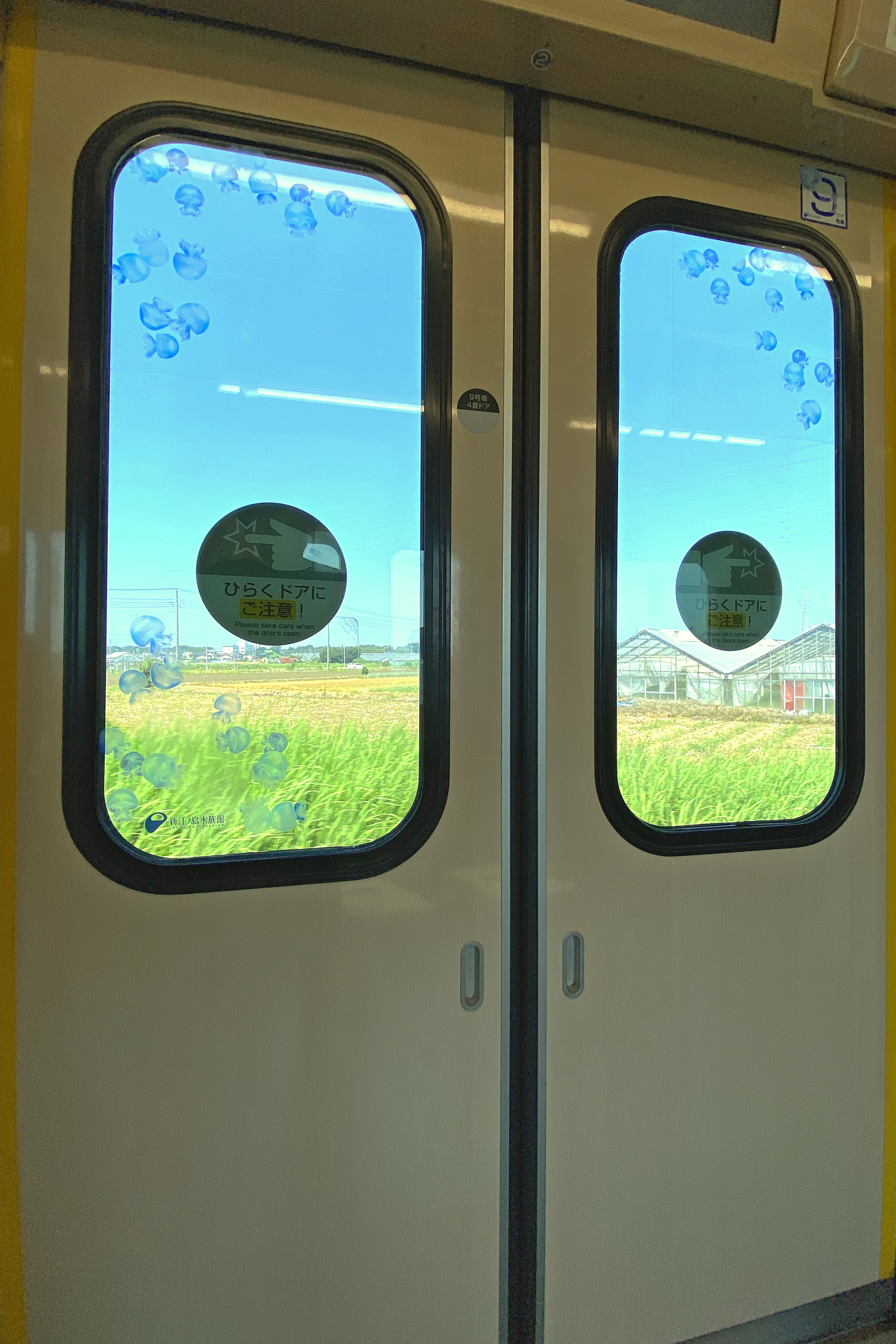 1ヶ月という運行期間がもったいないと感じるぐらい、ドアの窓ガラスを泳ぐくらげが素敵なくらげとれいん。広告をジャックしている電車であるため、充当されている列車の確認を含め、小田急への問い合わせはしないようにして下さい。