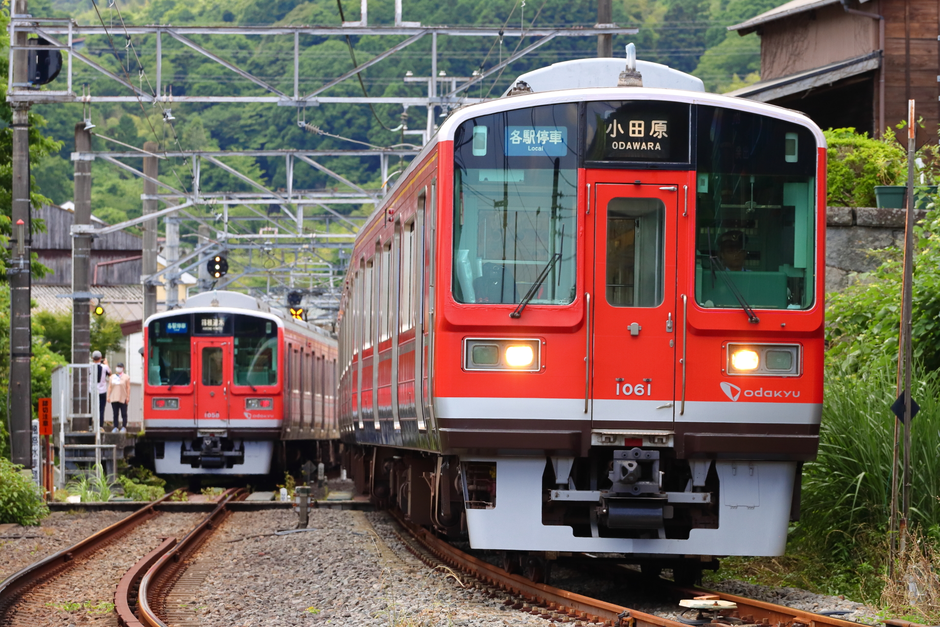 使う人が少ない場所を中心に、現在も第4種踏切が残る箱根登山線。小田急の車両との組み合わせも日常的に見られ、箱根登山線内ならではの光景といえそうです。