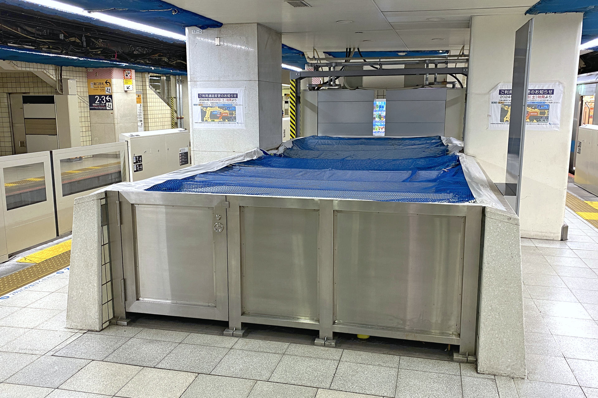 階段を下りた先はシャッターが閉められており、階段の入口にも扉が設置されていることから、乗降客が使用することはできません。
