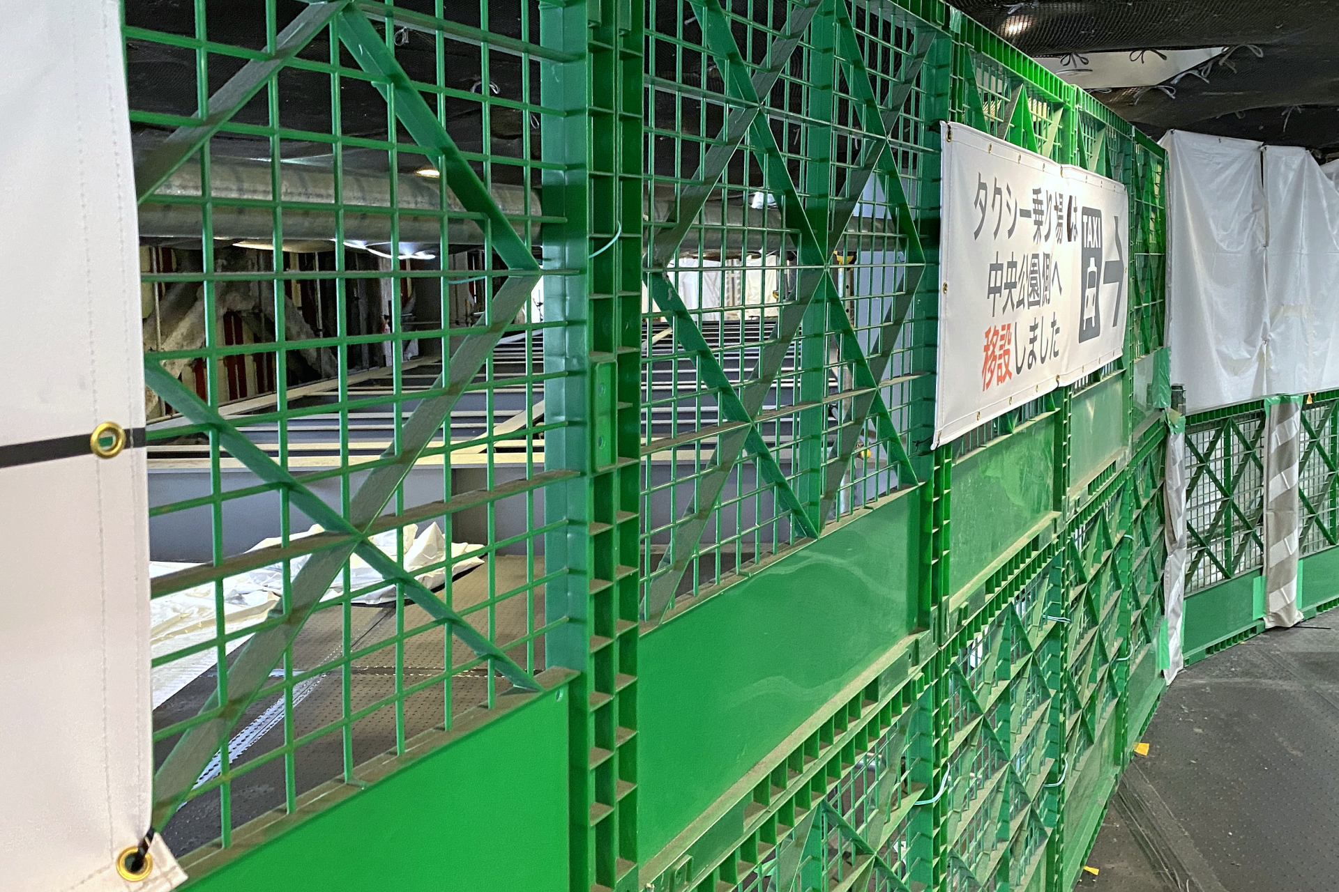 4月に閉鎖された「新宿駅西口地下前タクシー乗り場(京王口)」は、仮囲いの設置により中が見えなくなっていました。近くに他のタクシー乗り場があるため、利用者においてはそこまで不都合がありませんでしたが、念入りな案内が行われていたように思います。