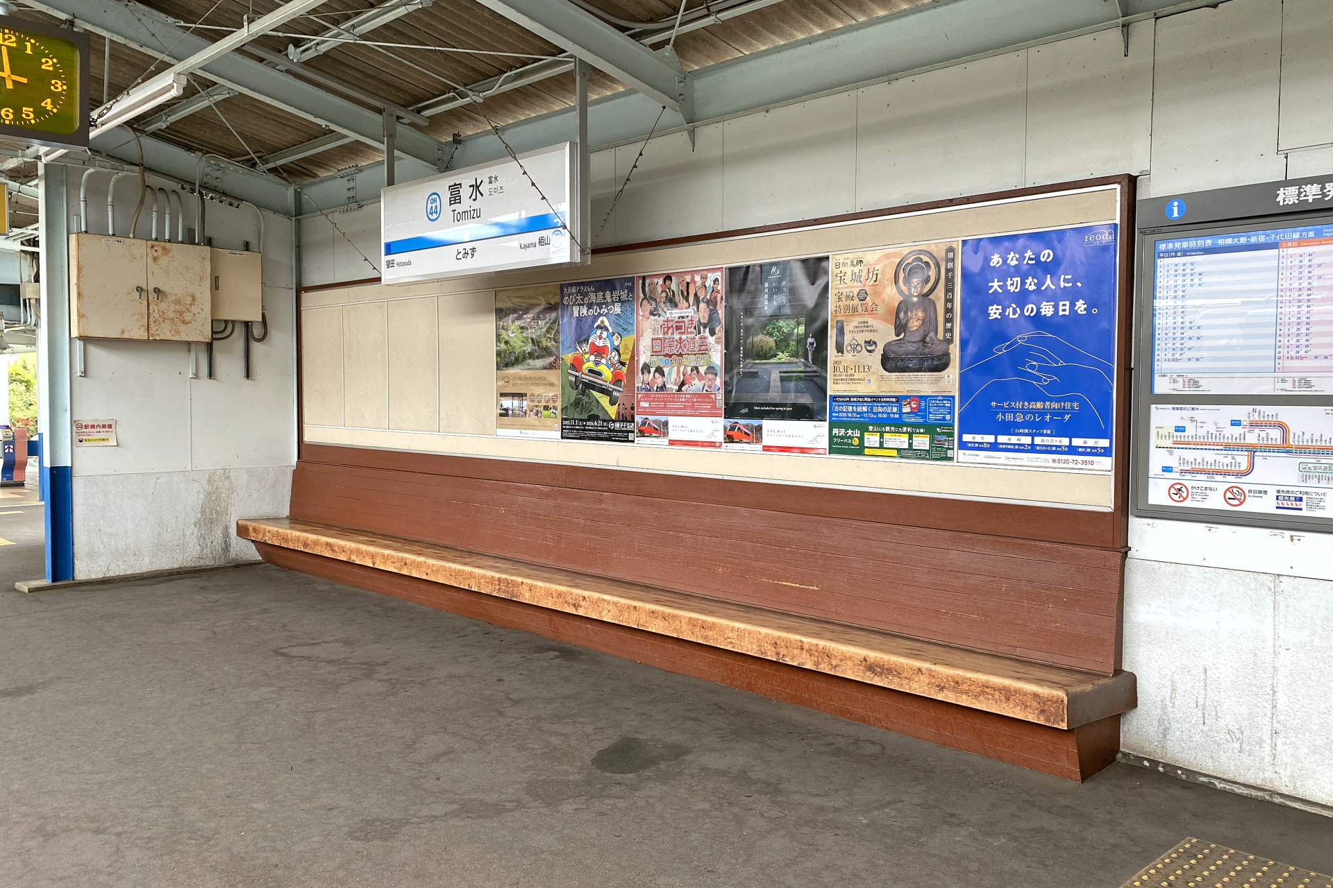 数を減らし続けた小田急のロングベンチですが、意外にもまだ残っている駅があります。小田原線の末端区間にある富水駅に存在し、上りホームで懐かしい姿を見ることが可能です。