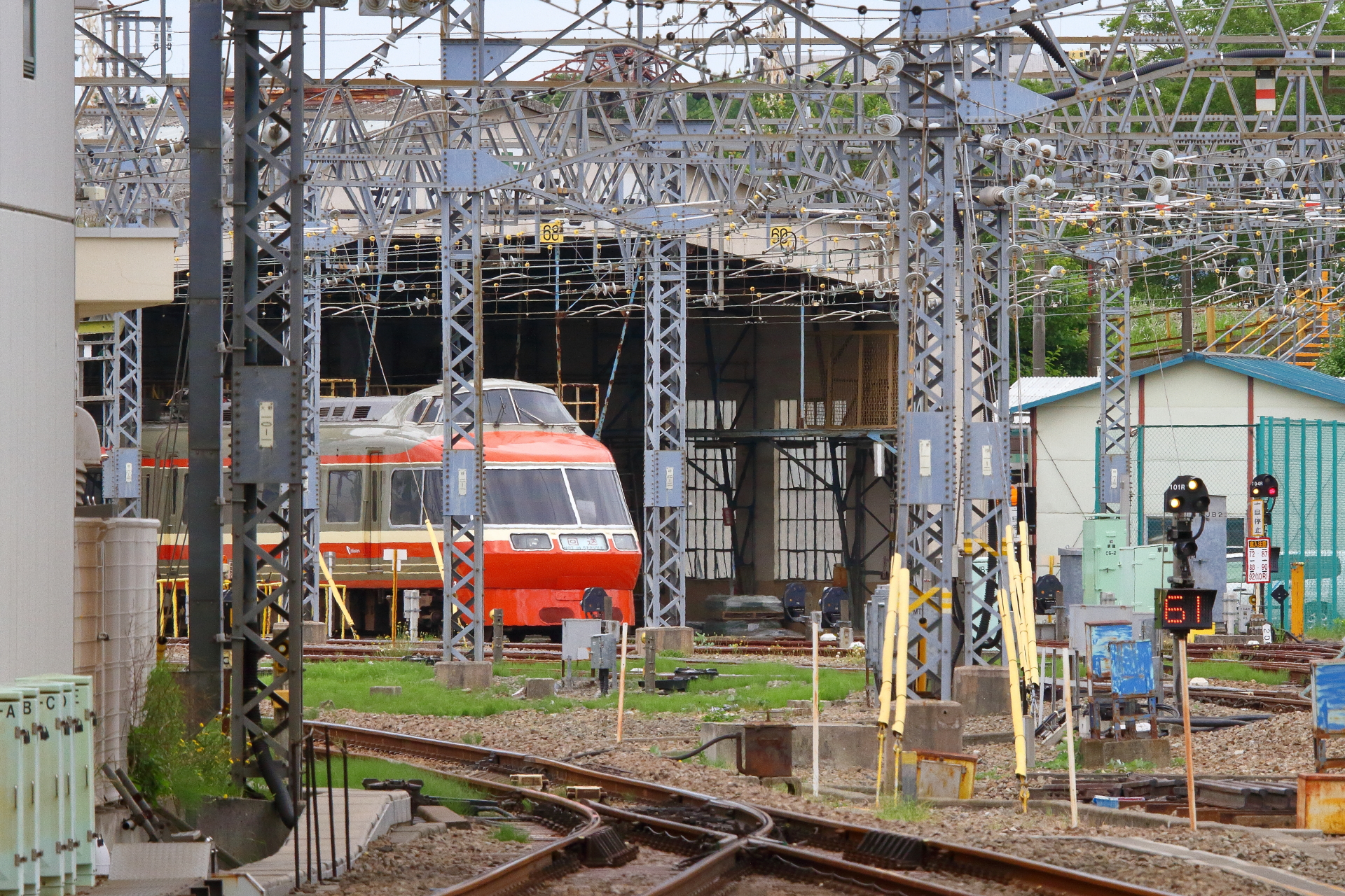 建物からはみ出してしまいますが、有効長は検修庫自体よりも長く、過去にはロマンスカーが留置されているシーンも見られました。