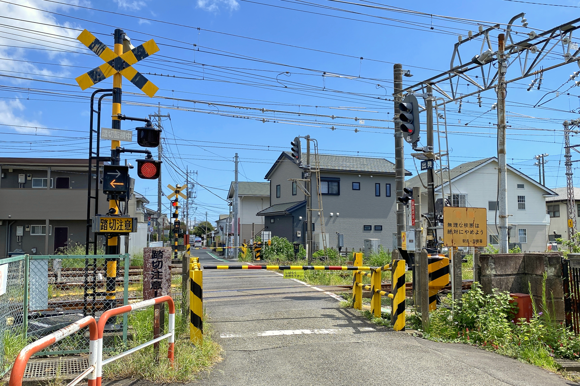 このような事情により、4線を跨ぐ長い踏切となっており、歩行者が渡る際には注意が必要です。