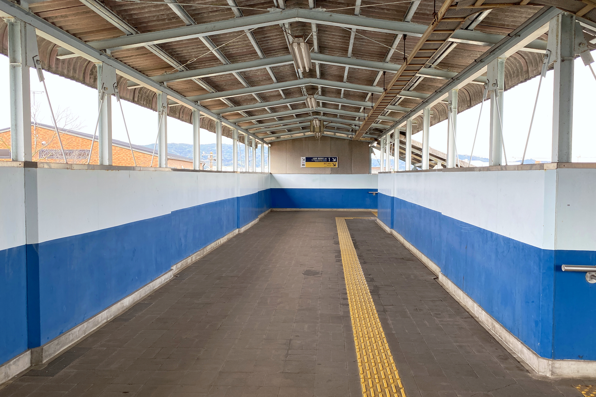 現代においては、階段の始まり部分が上屋に繋がっているのが一般的で、雨に濡れることなく上下線の行き来ができるようになっています。